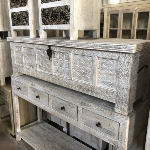 We feel fortunate to have found many gorgeous pieces today. The variety is astounding, ranging from original, rustic teak items to newly made, expertly carved bookcases, and everything imaginable in between. Below are some of the items we have ordered.