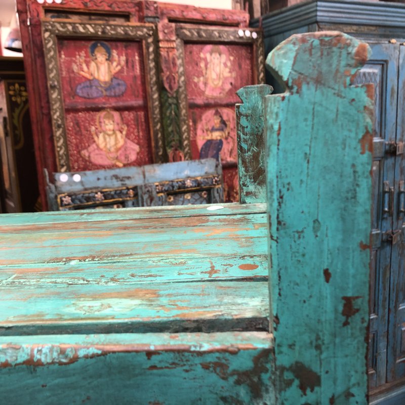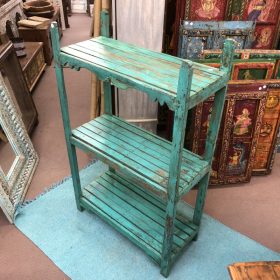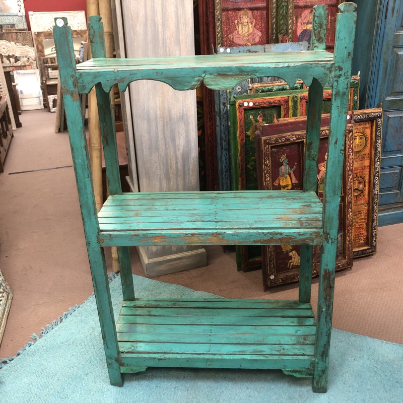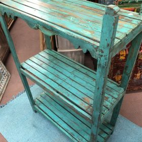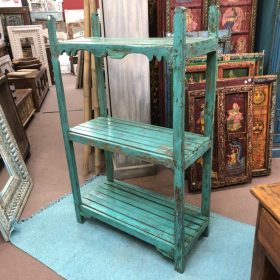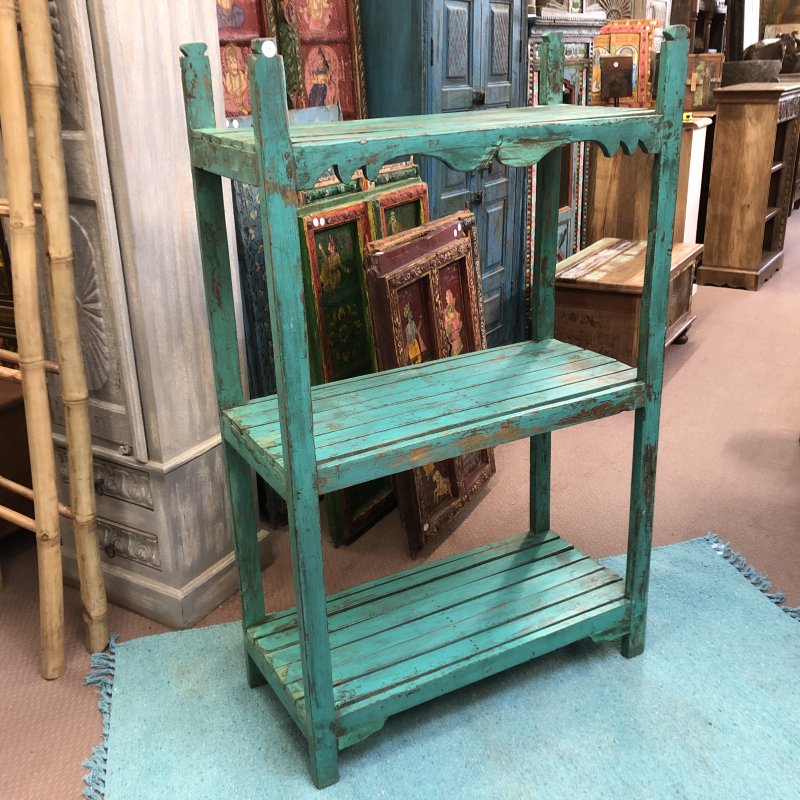 Enhance your home with this charming vintage wooden shelf, handcrafted with care. Its vibrant turquoise finish showcases a rustic charm, while the intricate curved detailing adds a touch of elegance. The sturdy design features two spacious shelves, perfect for displaying your favourite books, plants, or decorative items. This versatile piece not only serves as functional storage but also as a stunning focal point in any room. Each shelf tells a story of craftsmanship, hailing from the artistic city of Jodhpur, India. Transform your home with this unique treasure today!