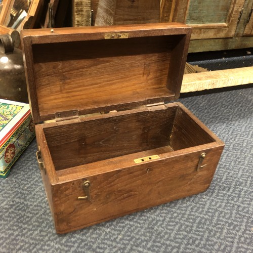 These charming small old teak vintage boxes originate from Rajasthan and exude character and charm. With their gorgeous patina and brass handles/clips; making for wonderful, individual and ‘lived’ storage items.