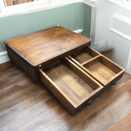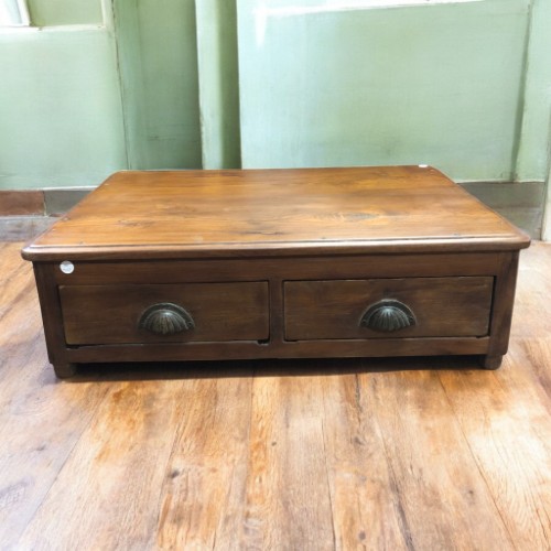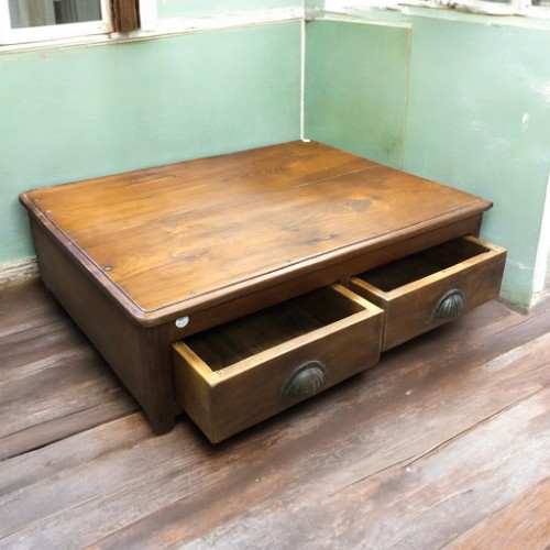 Introducing our exquisite low occasional table, a perfect blend of functionality and rustic charm. Crafted from rich teak, this piece showcases a stunning grain that highlights its vintage allure. With two spacious storage drawers, one featuring an unusual partition for optimal organisation, it’s ideal for stowing away essentials. The sturdy base is fitted with a metal sheet for added durability. This table is a timeless addition to any living space, bringing a touch of history from Jodhpur, India, to your home. Elevate your decor with this unique piece!