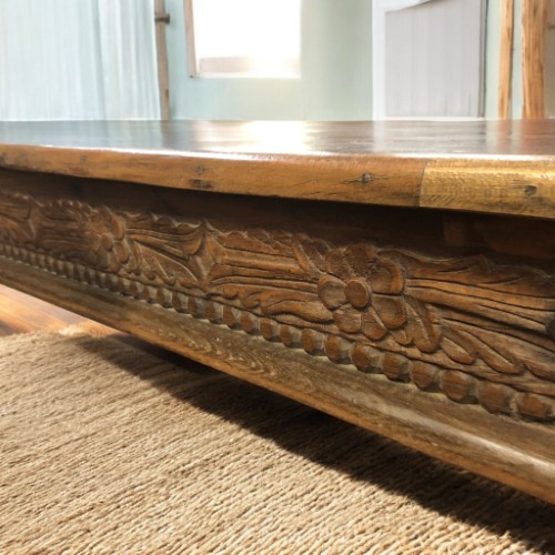 Carved woods are often incorporated into our pieces of furniture from India, both antique reclaimed pieces or newly carved items.