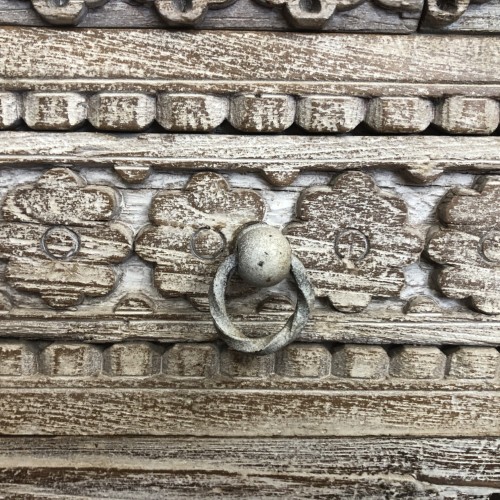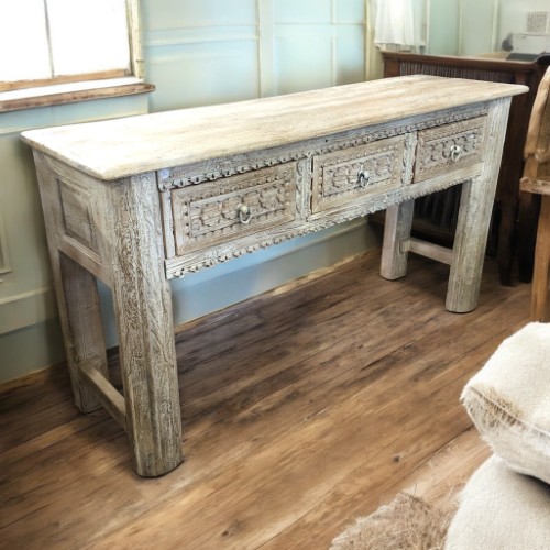 Discover the exquisite beauty of our captivating “3 Drawer Carved Console” meticulously crafted in the enchanting city of Jodhpur, India.