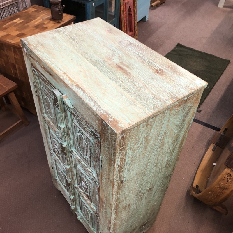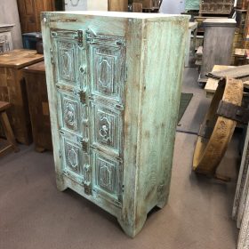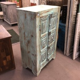 Discover the charm of our rustic Jodhpur cabinet, a perfect blend of tradition and style. Crafted from solid wood, its stunning weathered finish showcases intricate carvings and a distressed turquoise patina, giving it a unique vintage appeal. This piece features ornate hardware and spacious storage, making it both functional and decorative. Ideal for showcasing your favourite items or storing essentials, this cabinet brings a touch of elegance to any room. Embrace the beauty of craftsmanship from Jodhpur, India, and elevate your home decor with this timeless treasure.