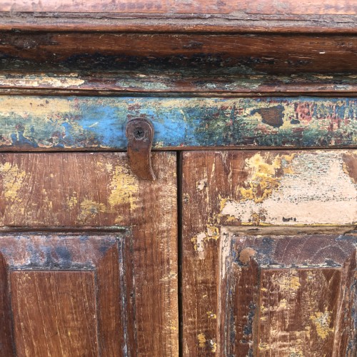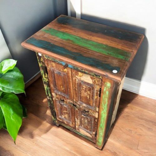 This small reclaimed cabinet originates from Jodhpur where local artisan craftsman have utilised a wonderful vintage hand carved old teak door and an array of reclaimed wood to make a most charming and characterful item of furniture; fabulous.