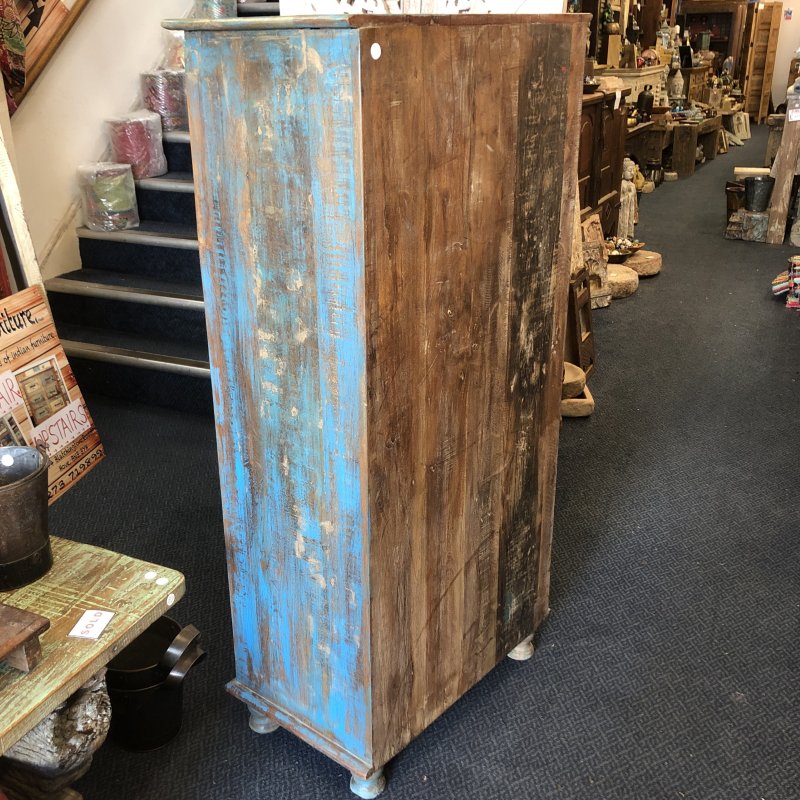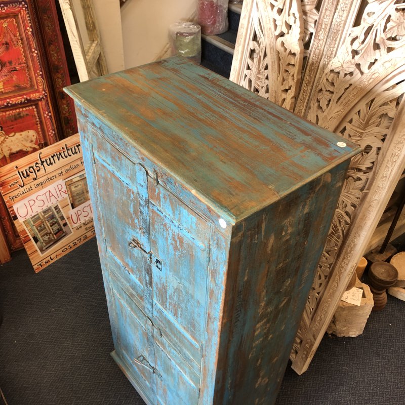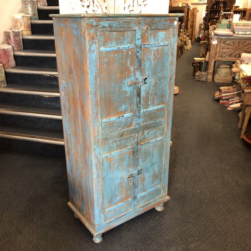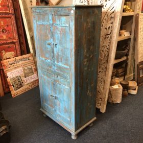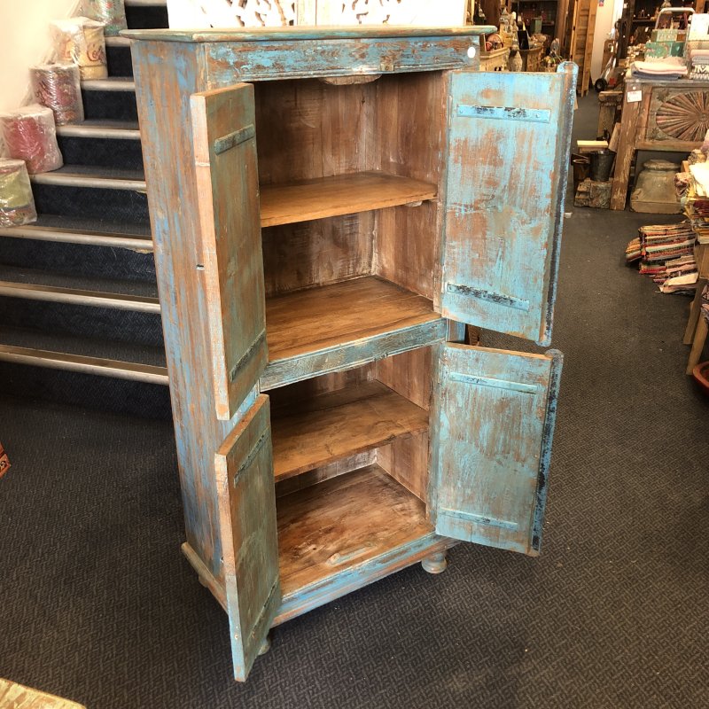 Elevate your living space with this exquisite vintage wooden two cuboard cabinet, featuring a stunning distressed blue finish that adds character and charm to any room. This unique piece consists of two separate cabinets—one at the top and another at the bottom—offering ample storage for essentials. Crafted with care, the cabinet showcases unique textures and a rustic appeal, making it a practical and stylish addition to your home. Sourced directly from Jodhpur, India, this piece embodies rich heritage and timeless elegance.