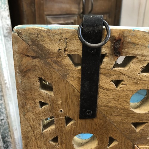 Elevate your space with this stunning blue patterned mirror, crafted from durable mango wood.