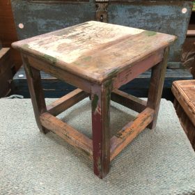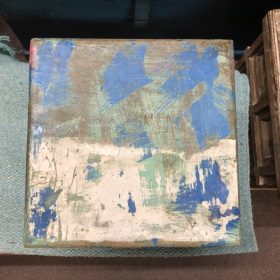 Elevate your space with our charming handcrafted mini shabby table / stool, a perfect blend of rustic charm and practical design. Each piece features a unique, weathered finish adorned with vibrant strokes of colour; blues, greens, purples and more, showcasing its artisanal roots. Built from sturdy wood, this stool is both functional and eye-catching, as a decorative accent in any room.