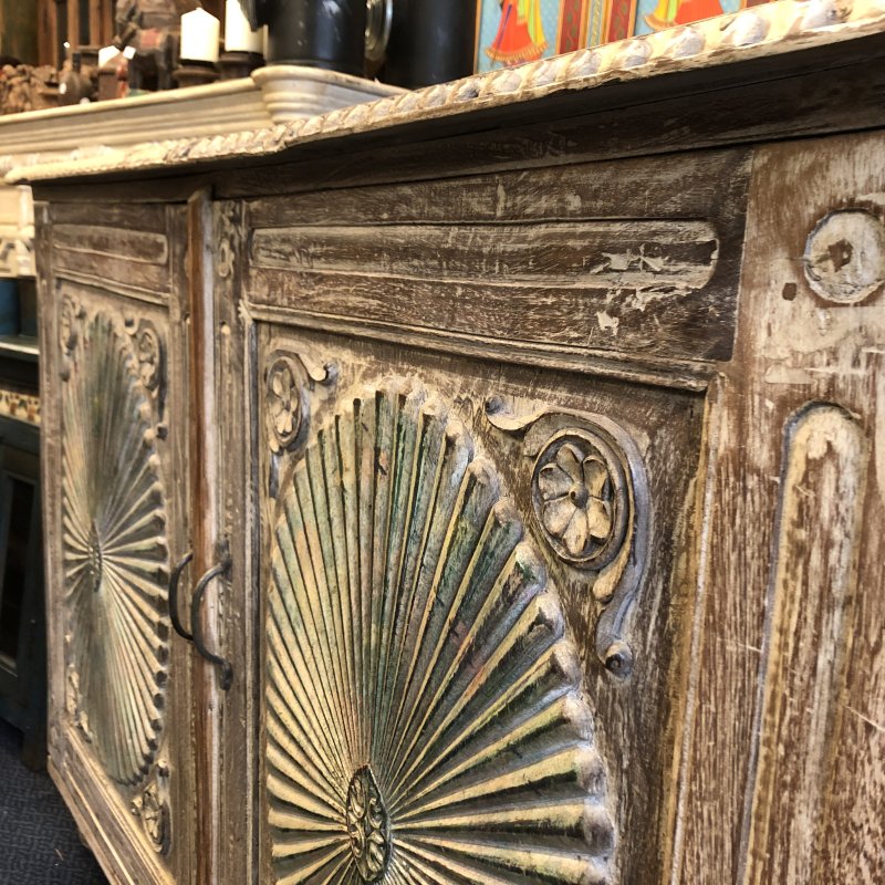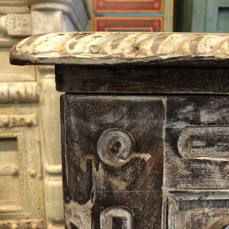 Carved woods are often incorporated into our pieces of furniture from India, both antique reclaimed pieces or newly carved items.