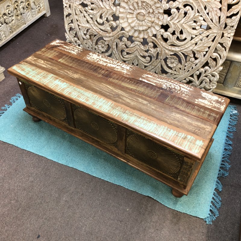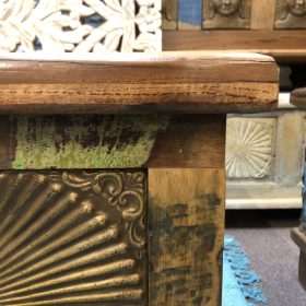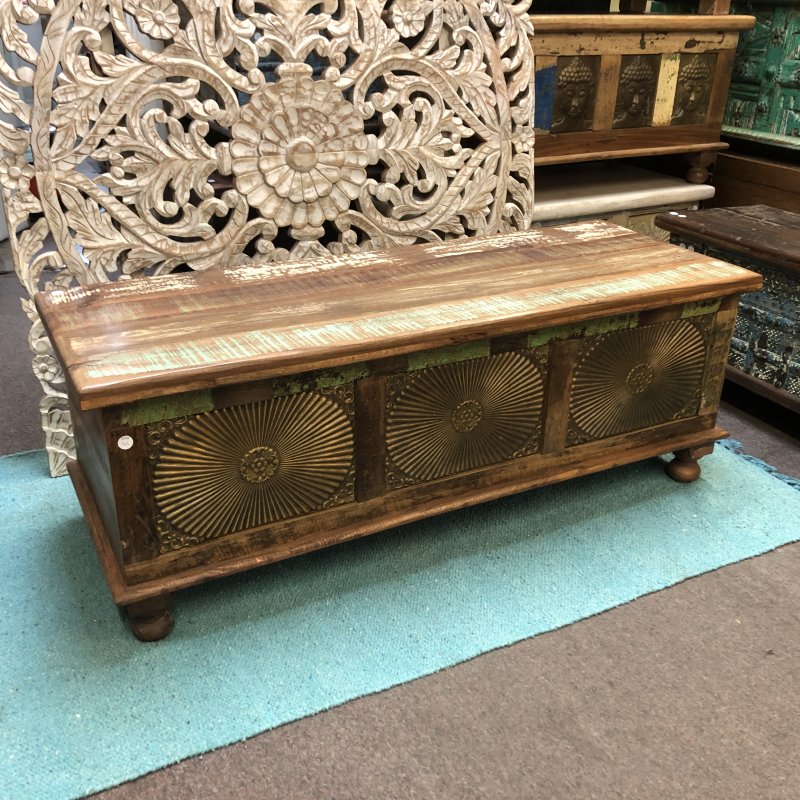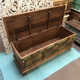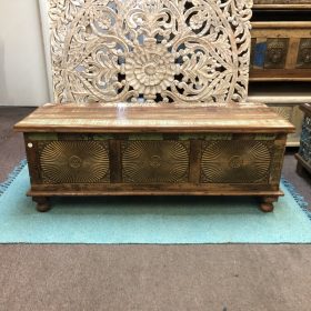 Illuminate your space with the stunning Bronze Sunburst Chest, a perfect blend of style and functionality. Crafted from high-quality wood, these chests features intricate bronze detailing that mimics the radiant sun, adding a touch of elegance to any room.Colours vary from piece to piece, including vibrant turquoise accents that bring a modern twist to its vintage charm. With ample storage space, it’s ideal for keeping your belongings organised while enhancing your decor. This exquisite piece is proudly made in Jodhpur, India, known for its rich craftsmanship and artistry. Transform your home with a piece that tells a story!
