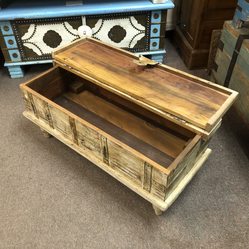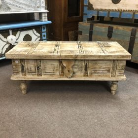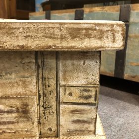 Discover the charm of this exquisite handcrafted petite shabby trunk- cream, perfect for adding a touch of elegance to your home. Each piece showcases unique craftsmanship with intricate detailing and various muted colours. Made from reclaimed wood, they boast a rustic finish that tells a story, making them ideal for storage or as a decorative accent in any room. These trunks are not only functional but also serve as a beautiful statement piece. Sourced from Jodhpur, India, they blend tradition with style, bringing a piece of the vibrant culture into your living space.