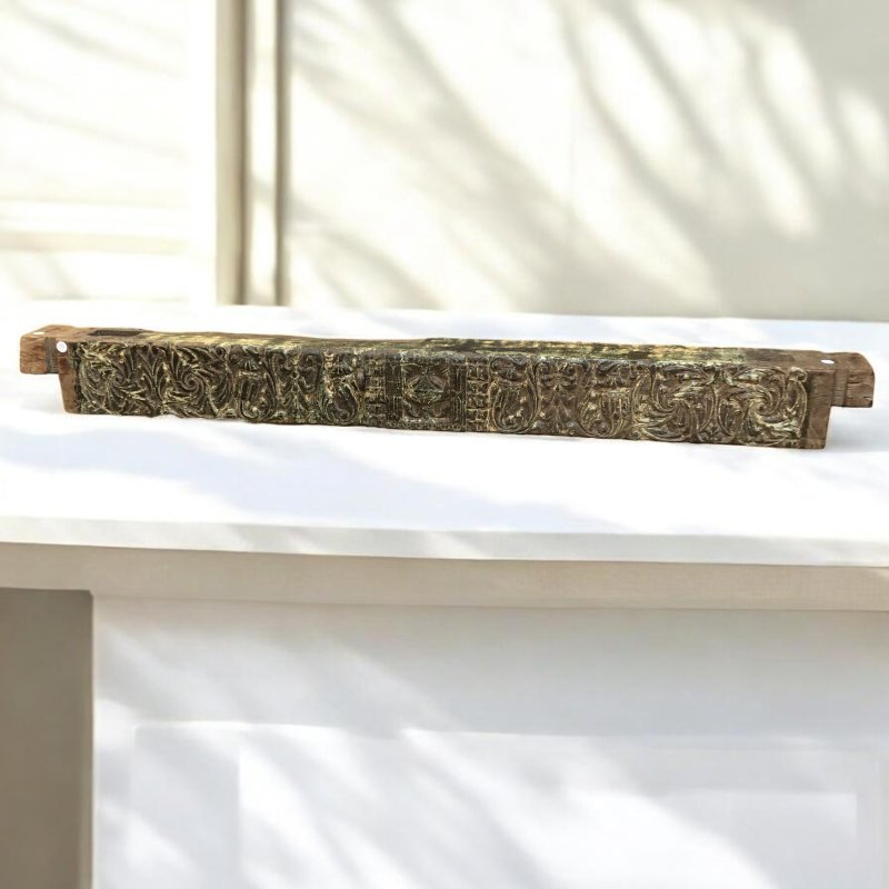 Enhance your home with this stunning chunky wooden lintel – green / yellow, a perfect blend of artistry and history.
